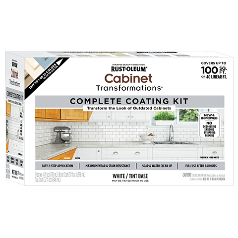 Before painting cabinets in your own kitchen, be sure to follow all instructions on your Cabinet Transformations product label. This includes cleaning the cabinets and applying the bond coat before completing your project with the topcoat. While these cabinets were painted white, Rust-Oleum Cabinet Transformations can be tinted to the color of your choice.