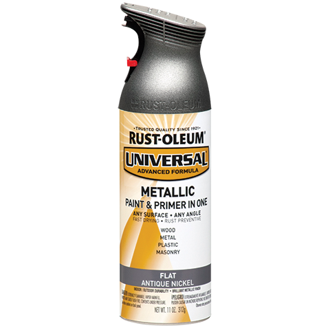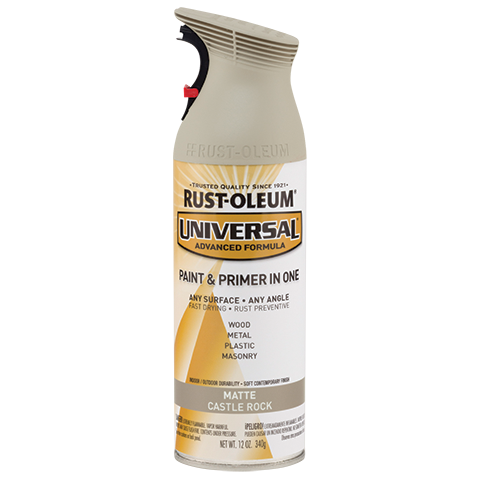 Rust-Oleum Universal spray paint is a paint and primer in one that delivers the enduring beauty of handcrafted finishes on any surface. Universal® spray paint features an ergonomic trigger that eliminates finger fatigue and allows you to spray from any angle.